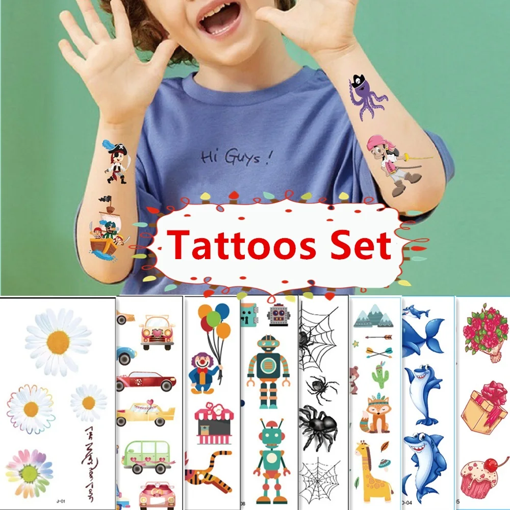 Name: 10 unids/set 23 tipos de traducción tatuajes de dibujos animados pegatinas de anime temporal de los niños tatuaje de flor Animal tiburón Robot